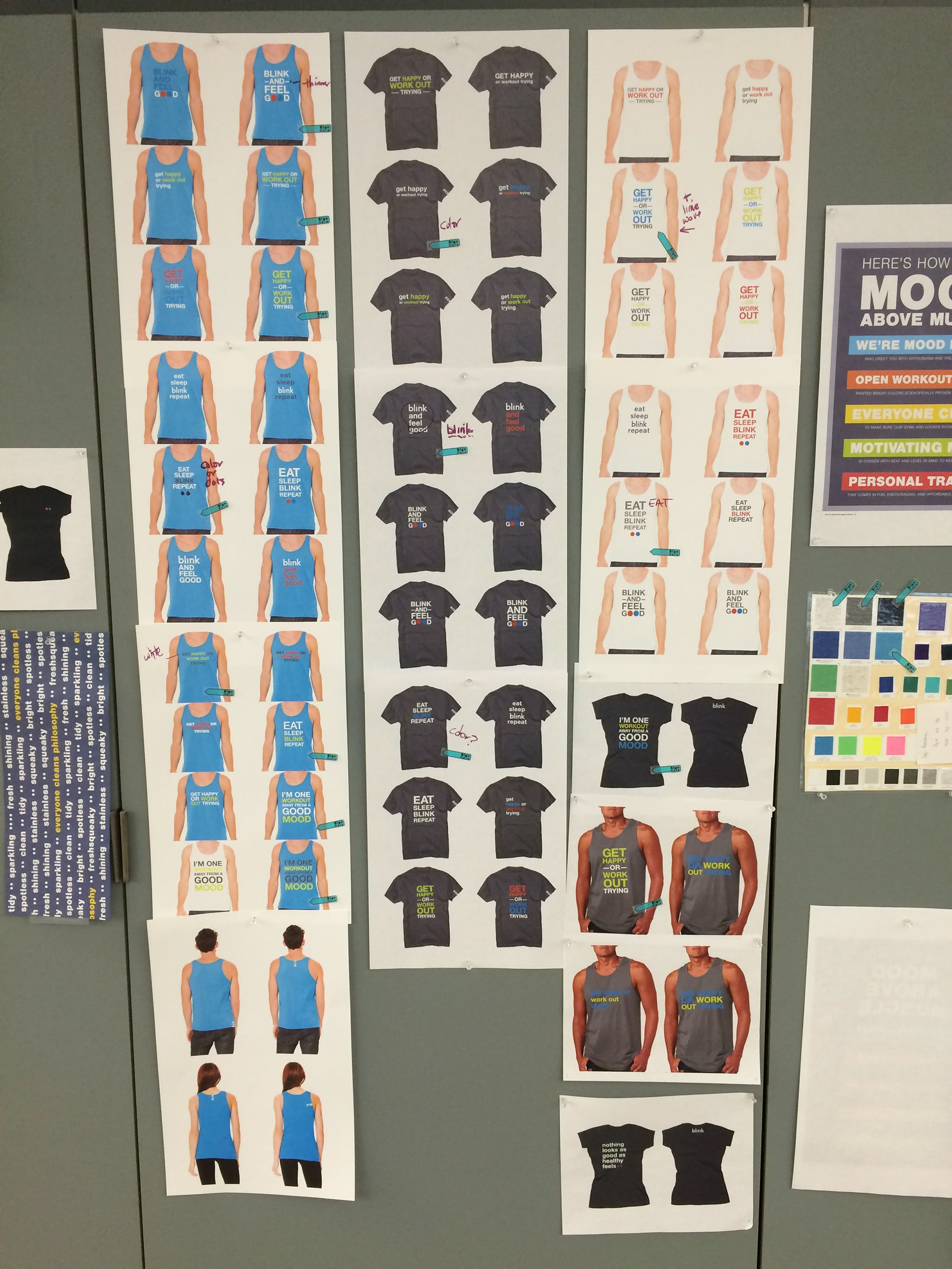 Designs for new staff "Mood Lifter" uniforms worn by 1000+ in gyms.