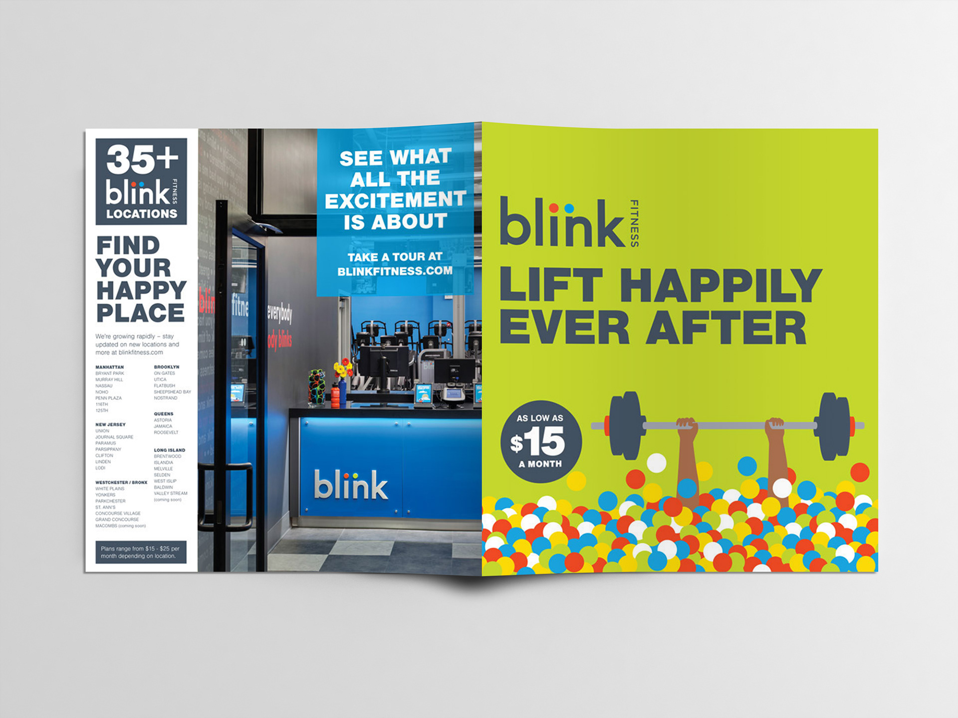A mass of print work on the "blink and feel good" campaign in and outside of the gyms.