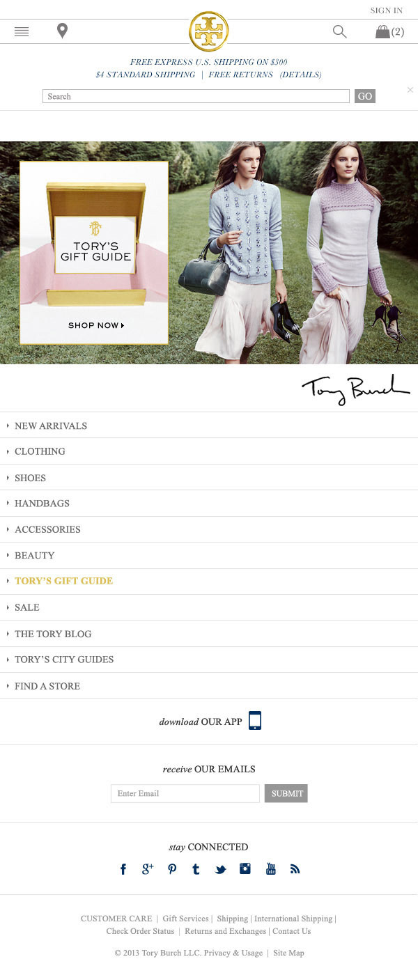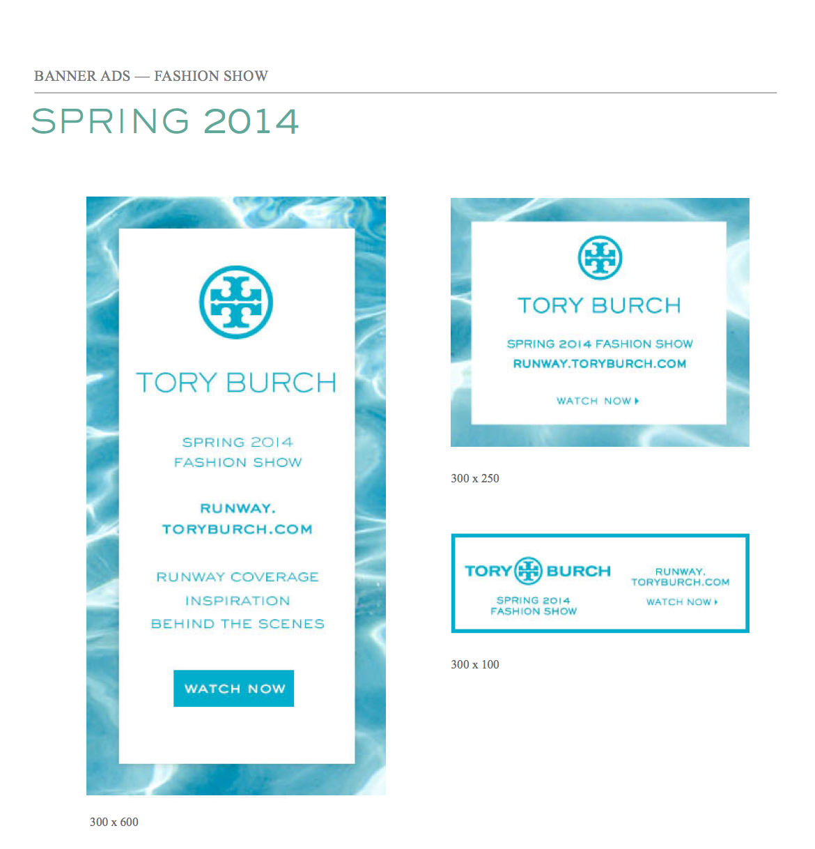 Created and produced online advertising, promotional emails, homepage merchandise windows, banners, mobile content, and styleguides for Tory Burch.